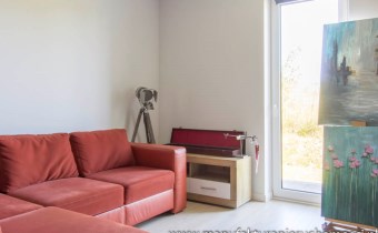 Centralną część domu stanowi wyjątkowo przestronny, pełen słońca dzięki licznym przeszkleniom, salon otwarty na komfortowo wyposażoną kuchnię (ze spiżarnią). W salonie znajduje się również kominek typu koza, będący dodatkową ozdobą wnętrza, nadającą przyjemny i wyjątkowy klimat. Strefę użytkową stanowią trzy sypialnie (wszystkie z wyjściem na ogród), stylowa łazienka z wanną i wc oraz łazienka z prysznicem.