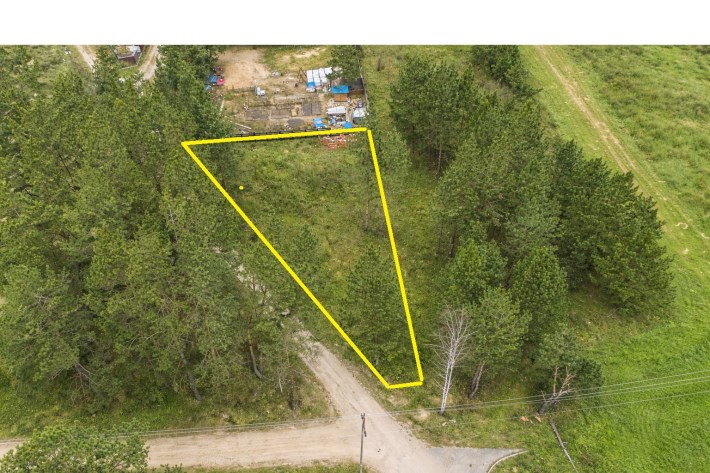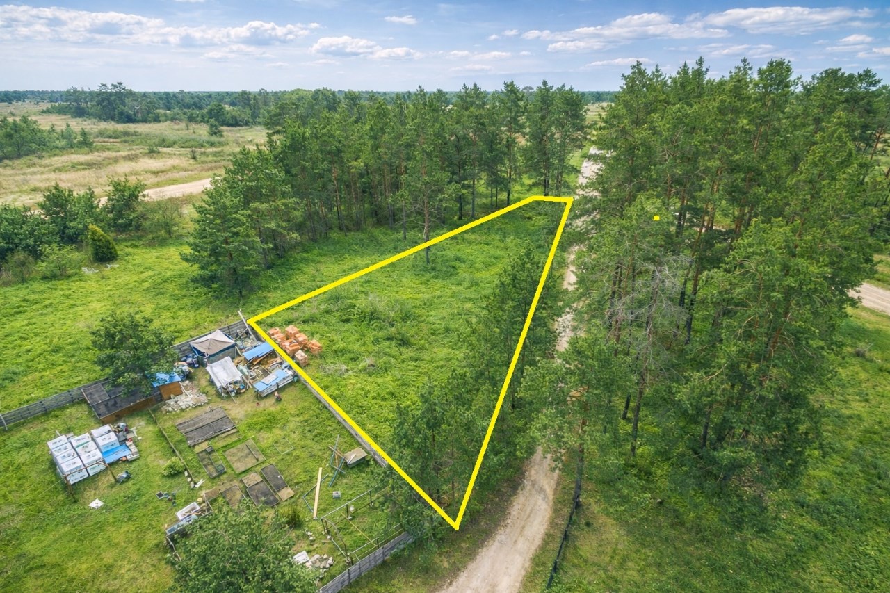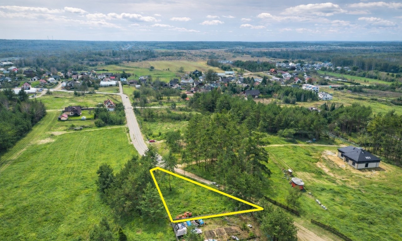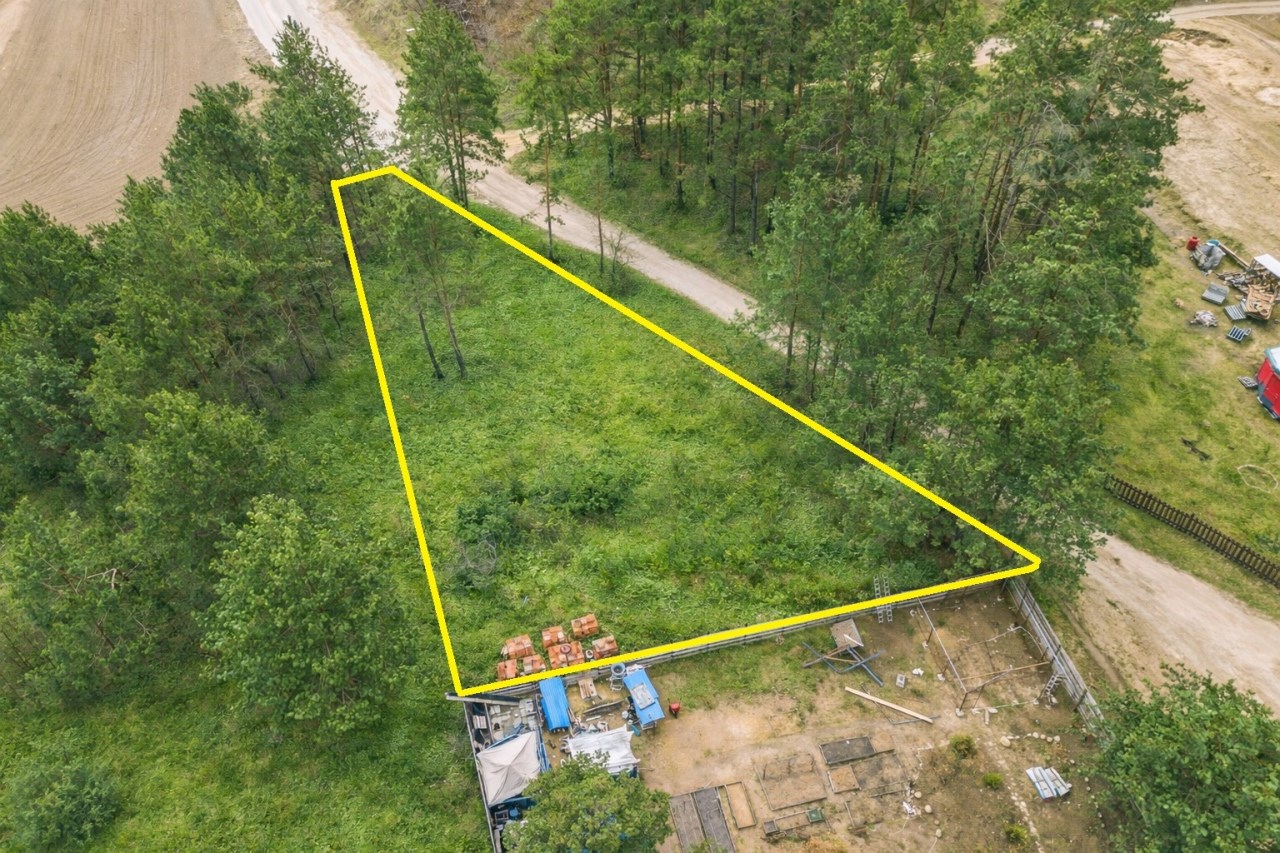 Działka o powierzchni 859 m² (nr geod. 271/49) ma nieregularny, ciekawy kształt – zbliżony do ściętego trójkąta, co daje możliwości nietuzinkowego zaprojektowania domu i ogrodu.