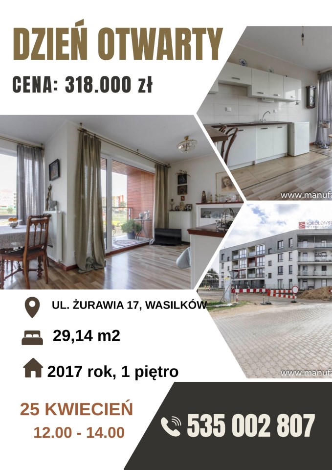 *KAWALERKA W WASILKOWIE NA I PIĘTRZE*BLOK Z 2017 ROKU*MŁODE OSIEDLE BLISKO LASU*DOBRA INWESTYCJA*