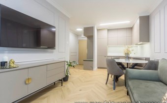 Mieszkanie jest wykończone w bardzo wysokim standardzie oraz przy wykorzystaniu materiałów wysokiej jakości, co daje przyszłym nabywcom gwarancję na długą i spokojną eksploatację.