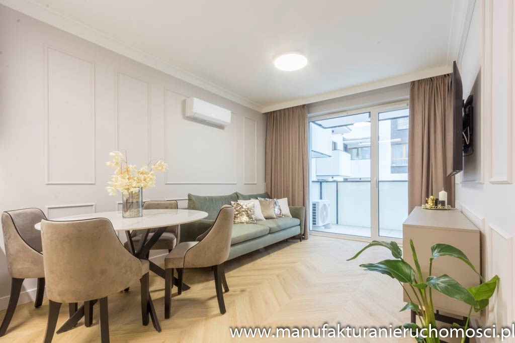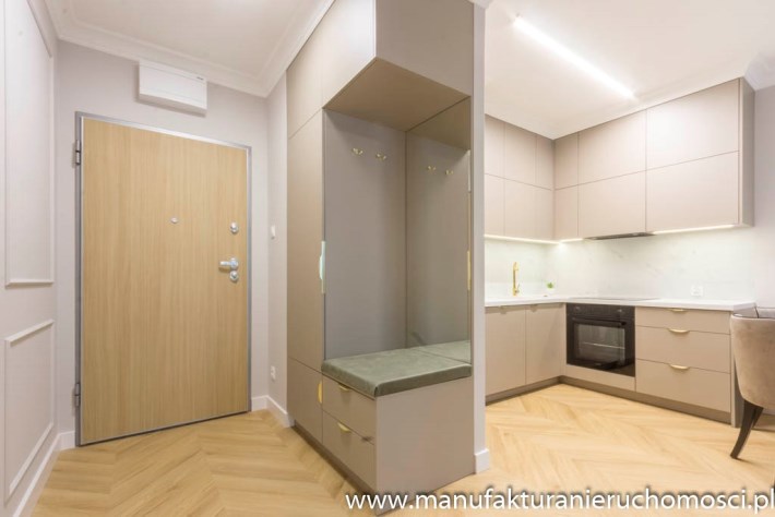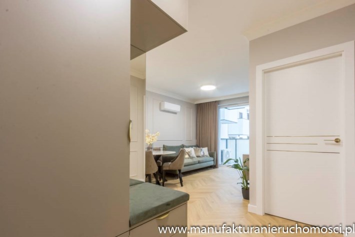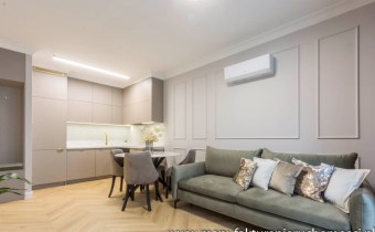 Mieszkanie posiada także pojemne zabudowy i klimatyzację.