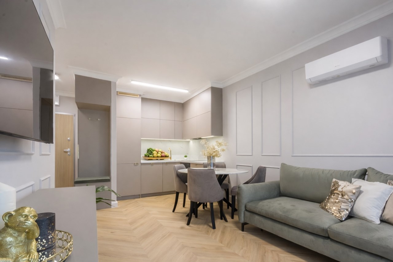 Mieszkanie jest wykończone w bardzo wysokim standardzie oraz przy wykorzystaniu materiałów wysokiej jakości, co daje przyszłym nabywcom gwarancję na długą i spokojną eksploatację.
