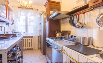 Wnętrze zostało urządzone w stylu eklektycznym, łączącym odrestaurowane, zabytkowe meble z nowoczesnymi, surowymi elementami o loftowym charakterze. Dzięki temu mieszkanie ma niepowtarzalny klimat – elegancki, ale jednocześnie przytulny i autentyczny.